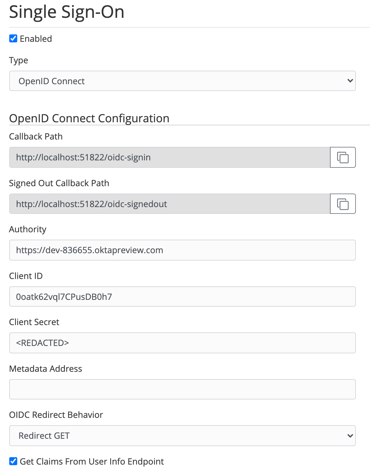 Client SecretCopy from Okta